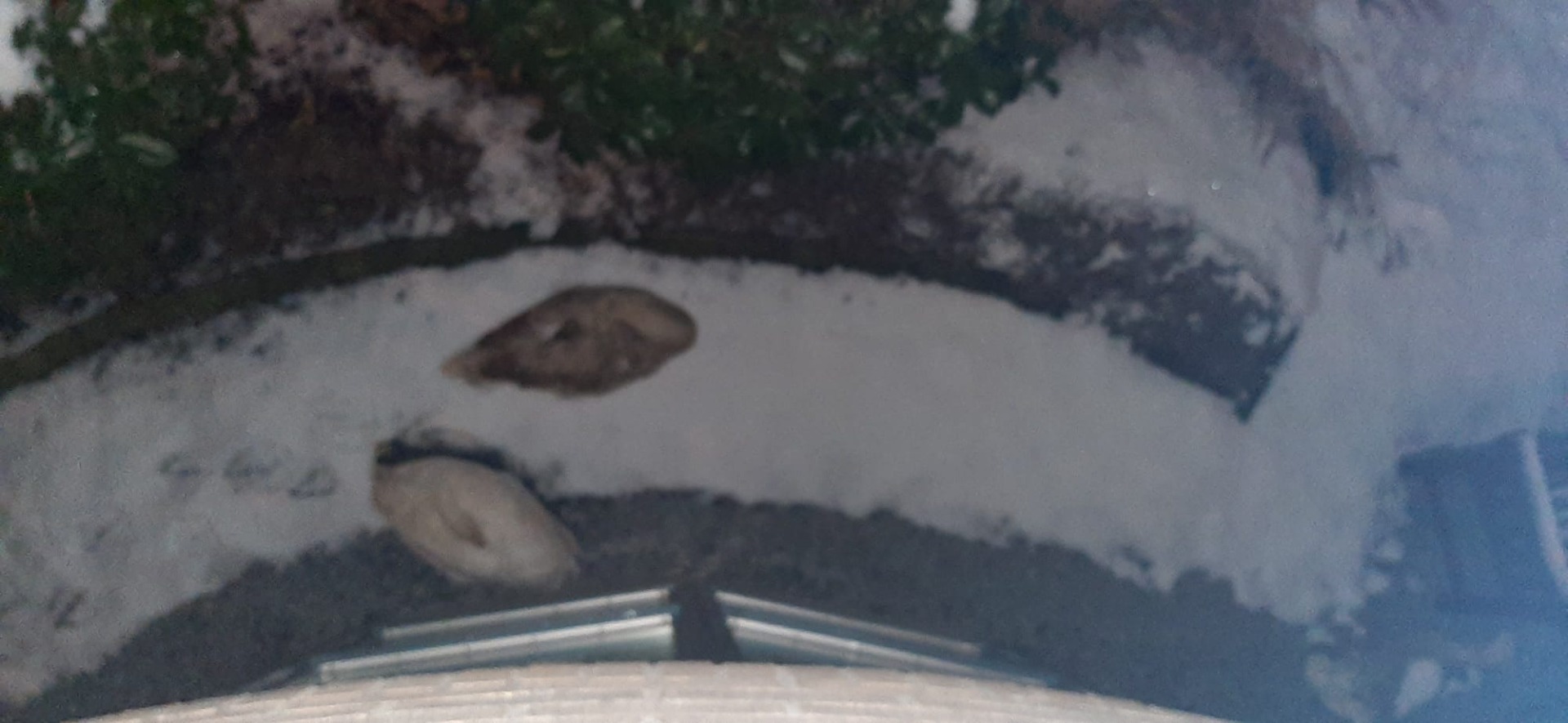 "Het zal toch weer niet waar zijn?!" Zojuist had ik een wat onbestemd geluid gehoord. Beetje voorzichtig en achterdochtig loop ik rond 20:45 naar het raam van onze woonkamer. En ja hoor,., daar ligt wat in de voortuin. Voorzichtig doe ik het gordijn een stukje omhoog en ik zie een wat vaal vaalwit 'voorwerp'' liggen.