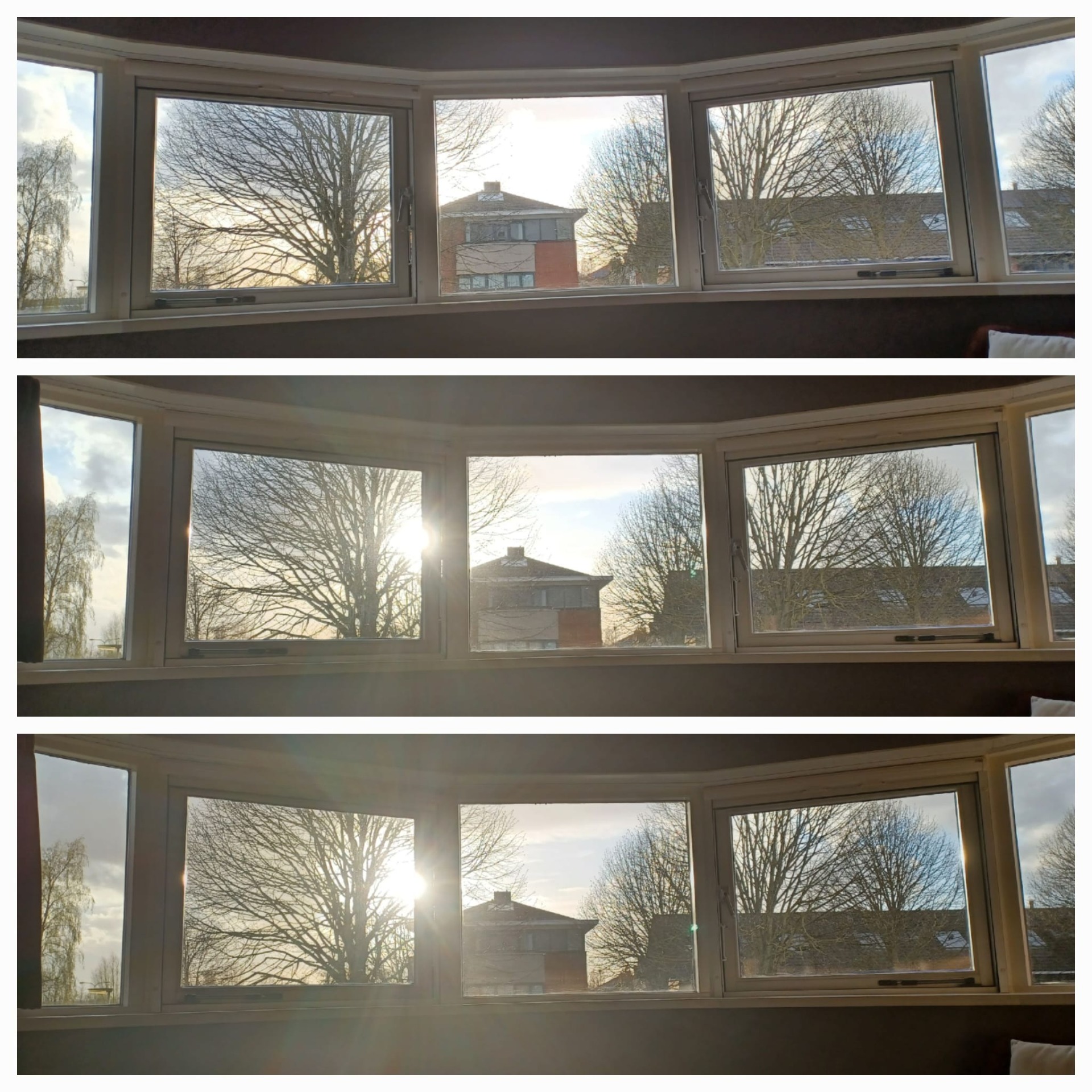 De drie foto's zijn vanuit een vrijwel identieke positie binnen 1 minuut gemaakt.... Drie dezelfde plaatjes? Ik was verrast door de verrassende verschillen. Verrassen, ontvangen, schenken en verwondering... zijn dat ook bouwelementen voor een spanningsvol en dankbaar leven? Beheers ik het? Gelukkig zijn we er om elkaar te helpen. Zullen we, in dankbaarheid en verwondering, gezamenlijk verwonderen....?